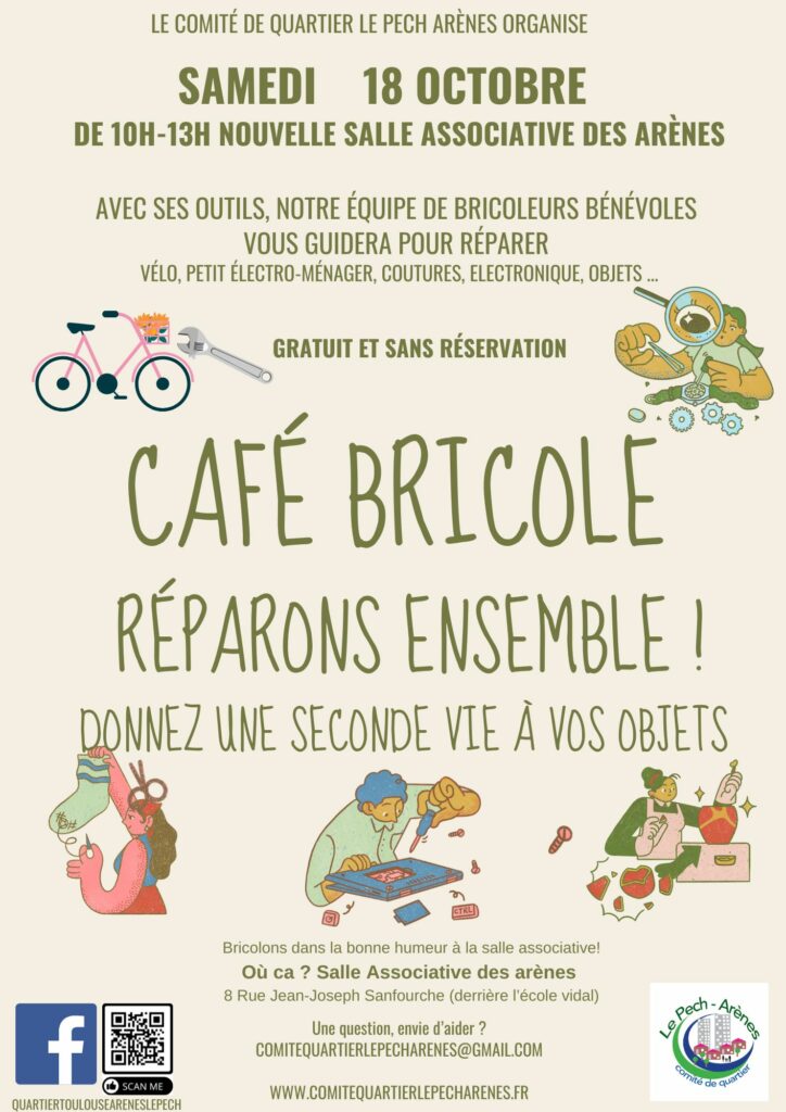 Le Comité de quartier Le Pech Arènes organise son café bricole, gratuit et sans réservation.