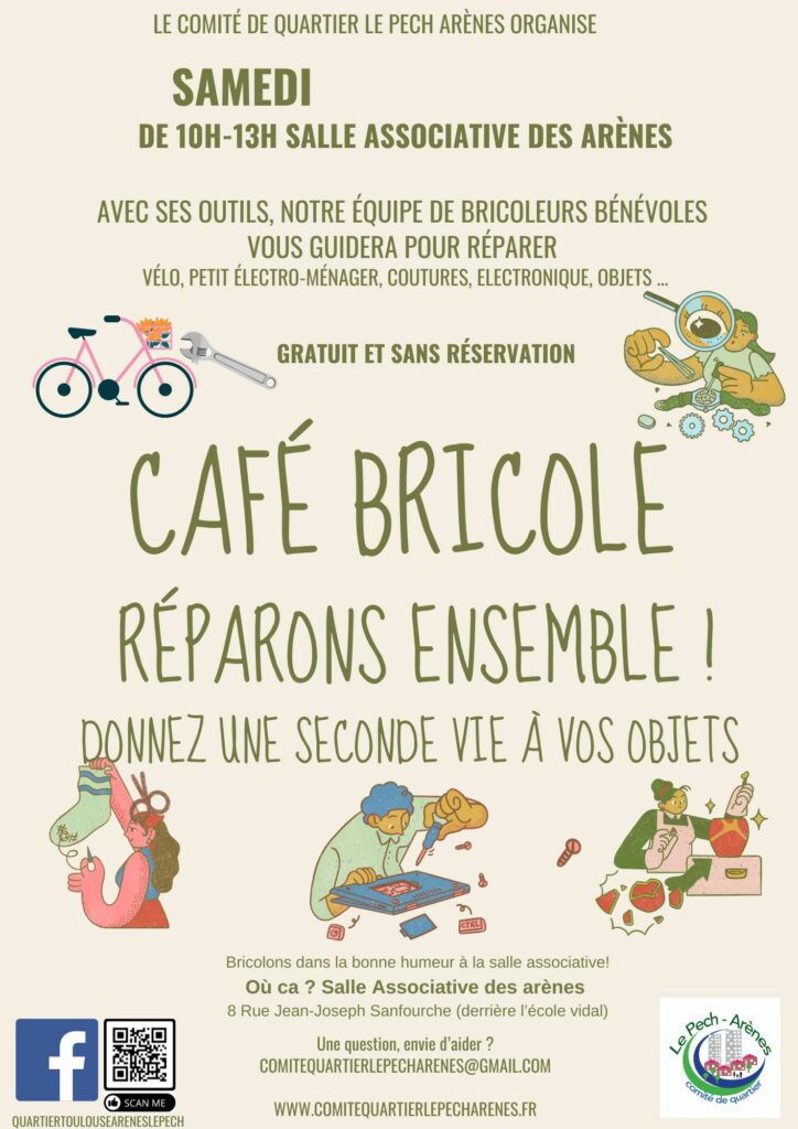 Le Comité de quartier Le Pech Arènes organise son café bricole, gratuit et sans réservation.