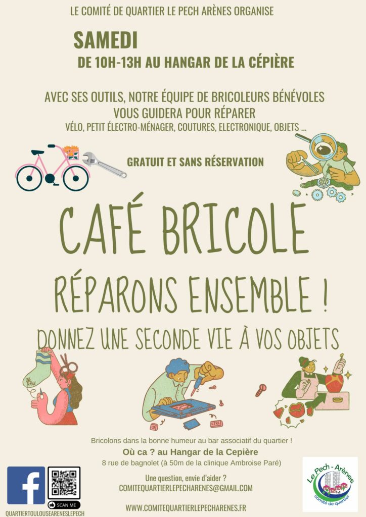 Le Comité de quartier Le Pech Arènes organise son café bricole, gratuit et sans réservation.